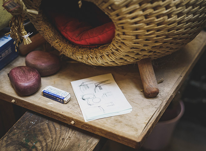 「椿井木工舎」のスツール。座り心地を追求したシンプルなデザイン