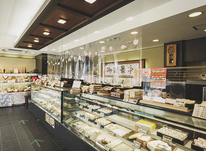 老舗和菓子店の上質な甘味だけでなく、元パティシエの三代目店主の特製洋菓子もカラフル。和洋折衷のコントラストが美しいお店です